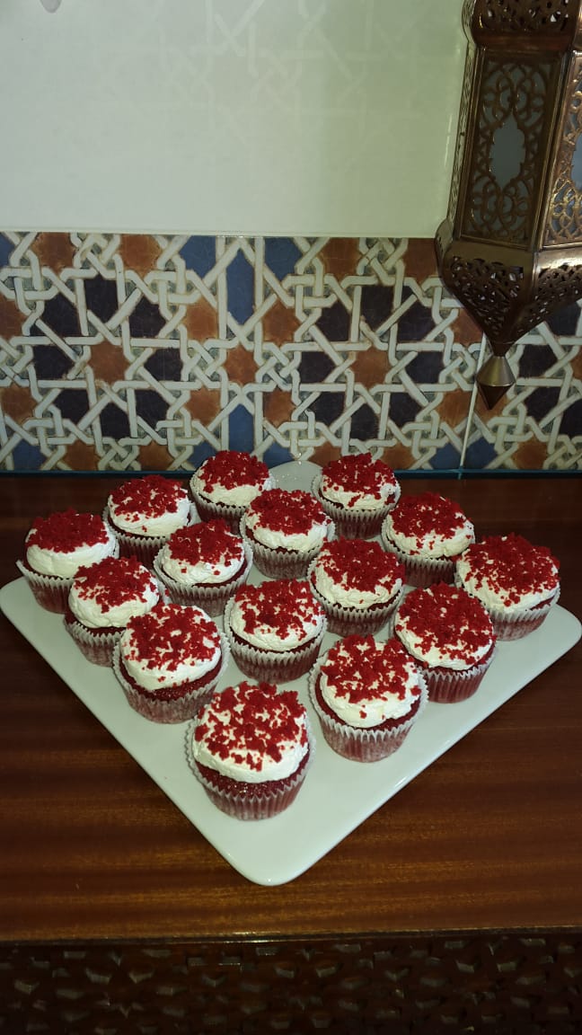 Cupcakes RedVelvet avec une crème au fromage blanc montée et garnis de cigare chocolat