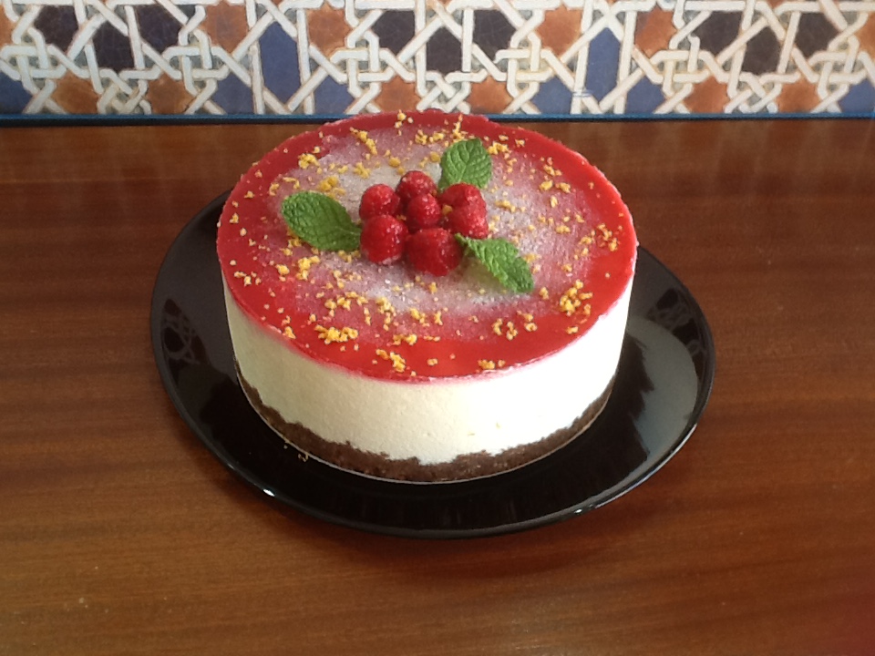 Un entremet composé d’une dacquoise aux amandes, d’un croustillant feuilletine-praliné, d’une mousse chocolat blanc